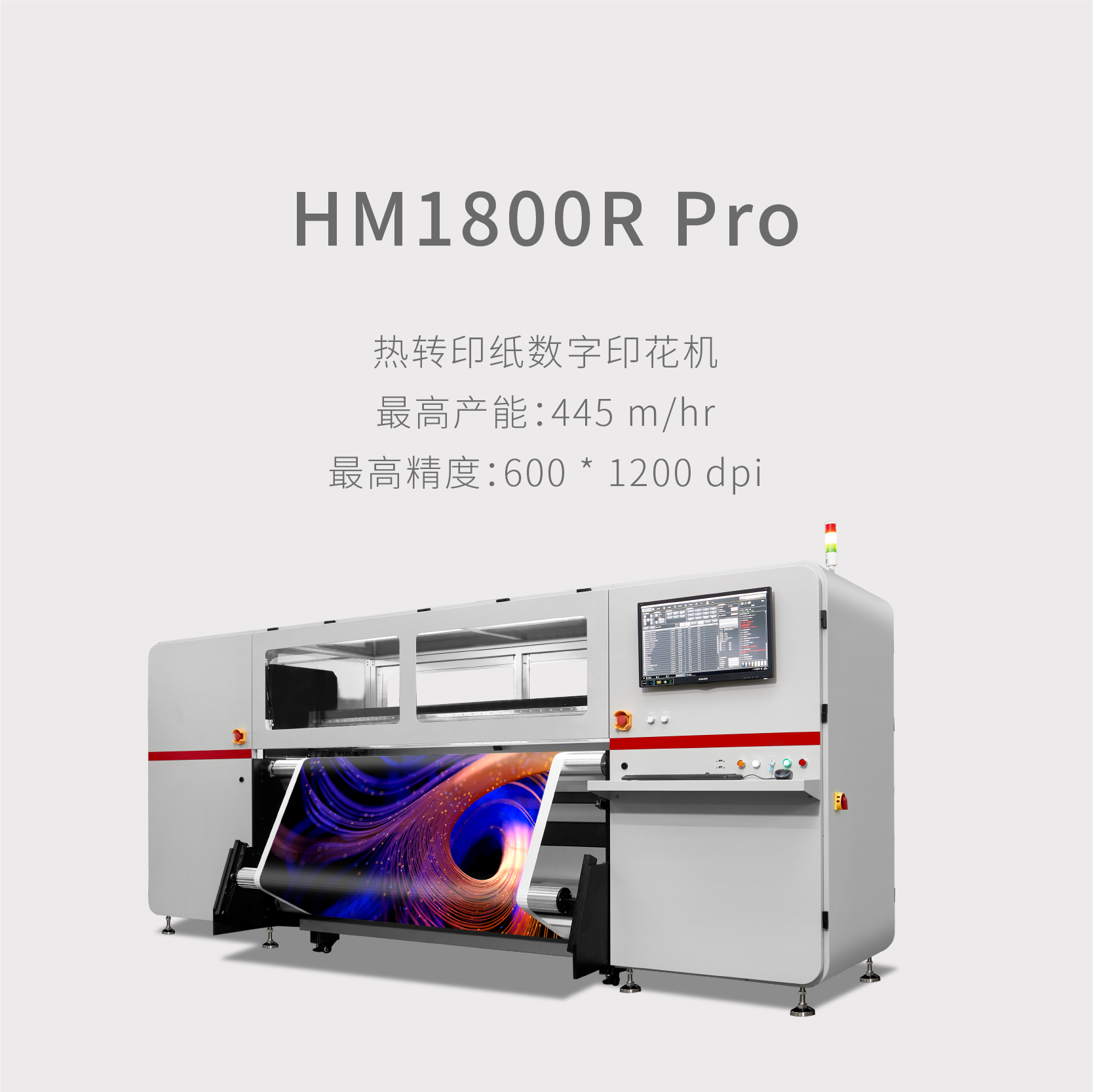 全新紡織印花導帶直噴機最高產能:1786㎡/hr 滿配64個工業級噴頭